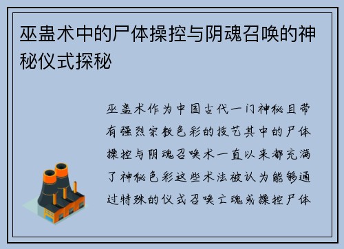 巫蛊术中的尸体操控与阴魂召唤的神秘仪式探秘
